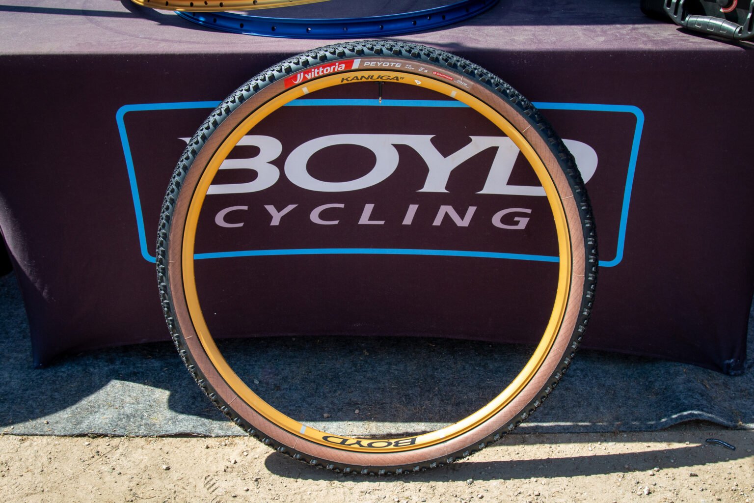 Boyd had a handful of anodized 32″ rims on display, including two CCC models meant for gravel with a 26mm internal.