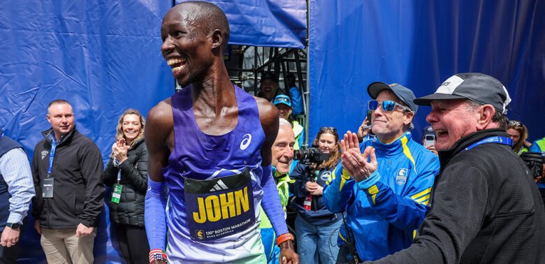 “I’m so excited,” said Korir (whose surname has been listed as Kipkosgei in some stats sources over the years including T&FN). “I knew I would defend my title, but I didn’t know I would run that fast. When I crossed the finish line, I did not know that I had the course record. Then they told me, and I started to be very happy.” Yes, literally bounding with joy.