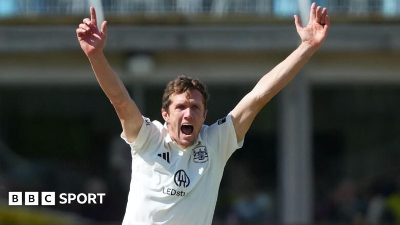 Aitchison then brought one back to deceive Ed Middleton (46) who shouldered arms and lost his off stump.