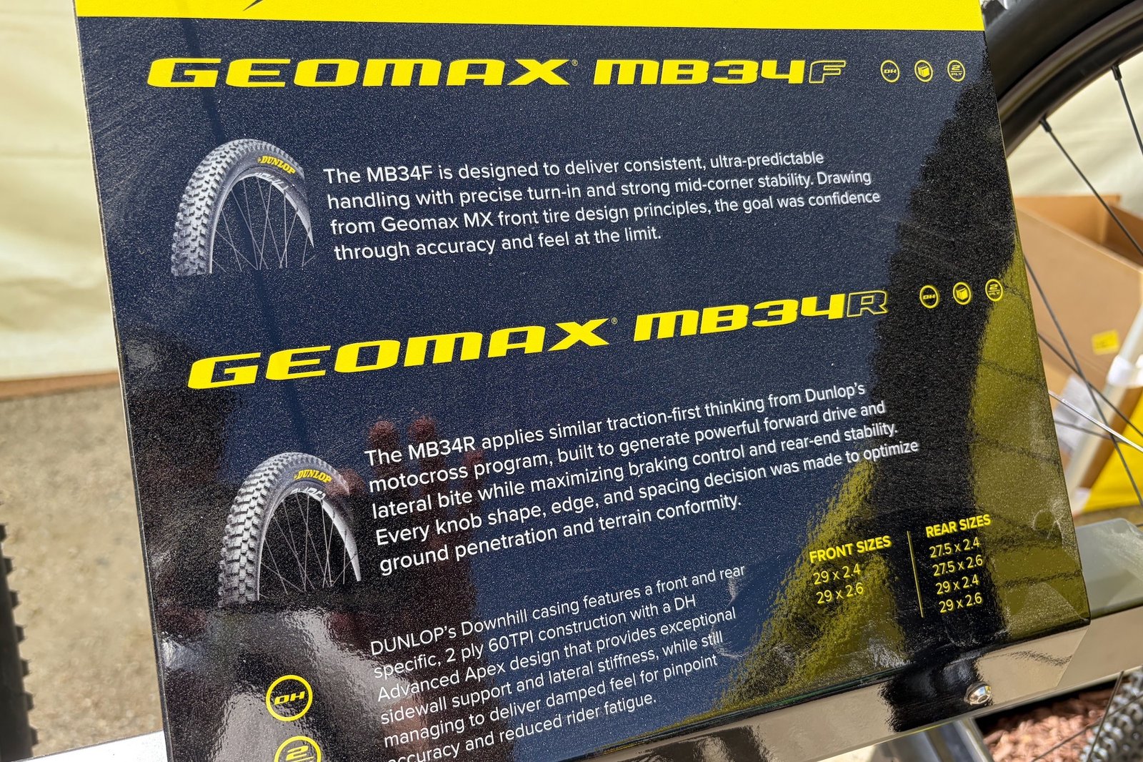 At present, Dunlop has its Geomax MB tires split into two lines, both with front- and rear-specific tread designs, and offered in Downhill or Enduro casings. The Geomax MB34 line is built for maximum traction and control for aggressive riders and terrain, while the Geomax MB53 is more focused on rolling speed and efficiency. Dunlop’s tire naming may be a touch confusing, but the tires look solid.
