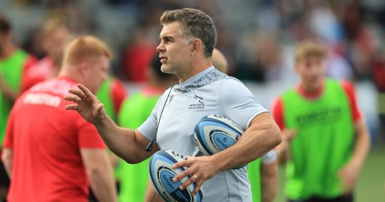 NEWCASTLE UPON TYNE, ENGLAND – SEPTEMBER 19: Nick Easter, the Newcastle Falcons defence coach looks on during the Gallagher Premiership Rugby match between Newcastle Falcons and Harlequins at Kingston Park on September 19, 2021 in Newcastle upon Tyne, England. (Photo by David Rogers/Getty Images)