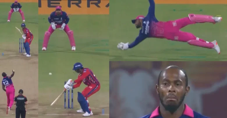 LSG’s Mayank Yadav attempted a flat-footed push, only to manage a thick outside edge that seemed destined to fly through the vacant slip cordon. What followed was a display of elite reflexes and sheer hang-time. Jurel, moving with the grace of a gymnast, launched himself horizontally to his right. Defying gravity, Jurel extended his right hand to pluck the ball out of thin air, completing a one-handed ‘specky’ while being almost fully parallel to the turf.