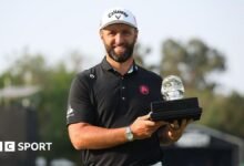 Rahm also won the team category with his Legion XIII team for the first time this year, with England’s Tyrrell Hatton and Northern Ireland’s Tom McKibbin both 11-under and Caleb Surratt two-under.