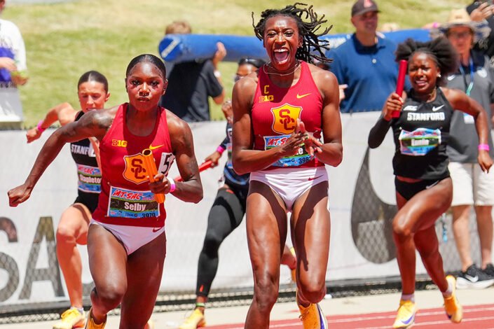 Just like the men, the women’s 400 held center stage, but before USC’s Madison Whyte took flight, she had a 4 x 100 to contend with.