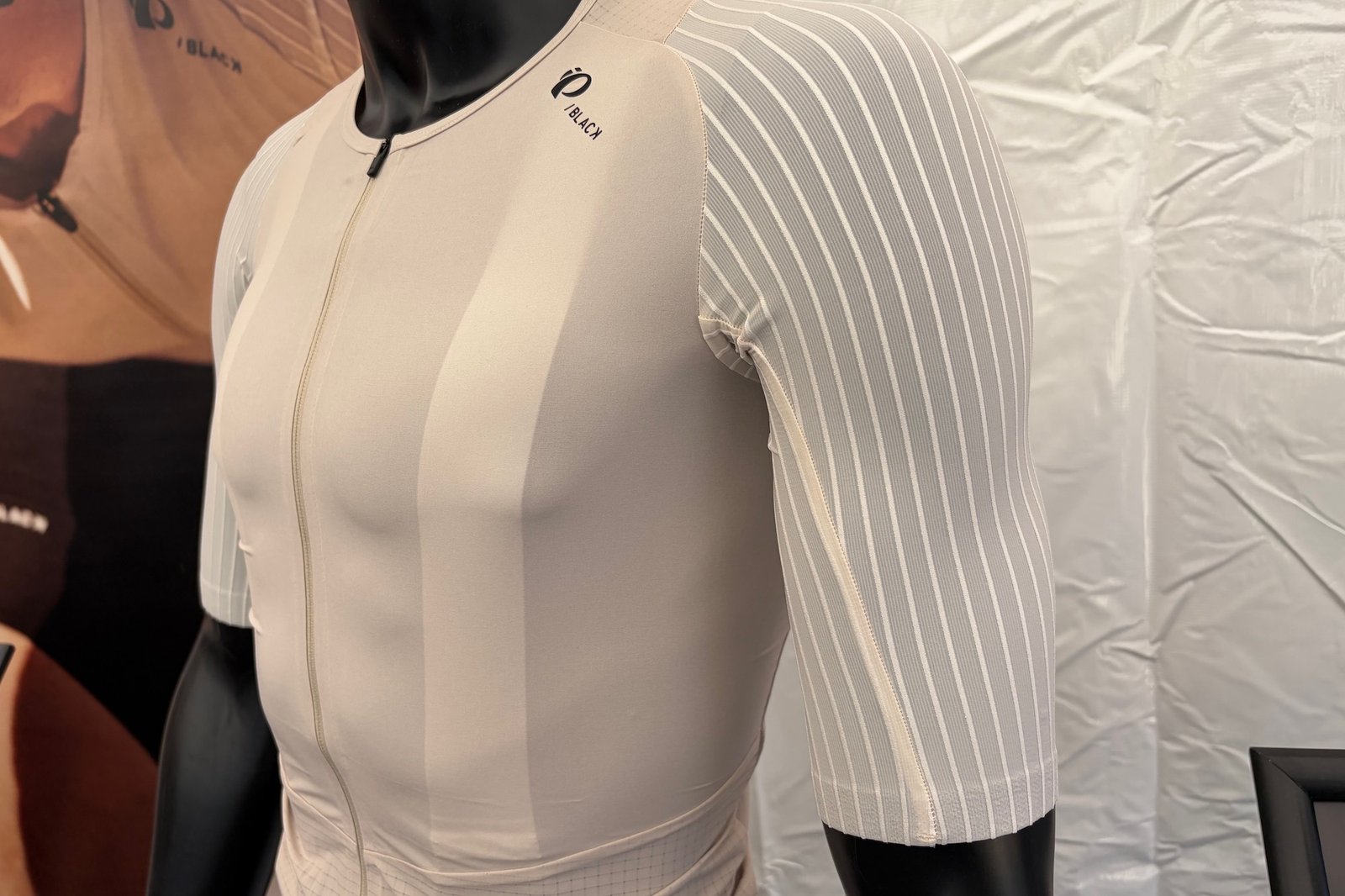 Pearl Izumi’s new Pi PRO/BLACK bibs and jersey displayed at Sea Otter. (photo/Jeremy Benson)