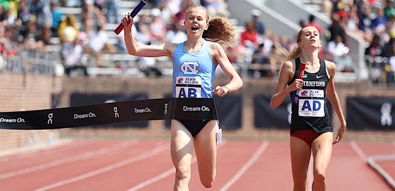 PHILADELPHIA, PENNSYLVANIA, April 23-25 — A Collegiate Record from North Carolina’s distance medley squad and a sprint relay sweep by Texas A&M stole the show among the women’s events at the 130th Penn Relays.