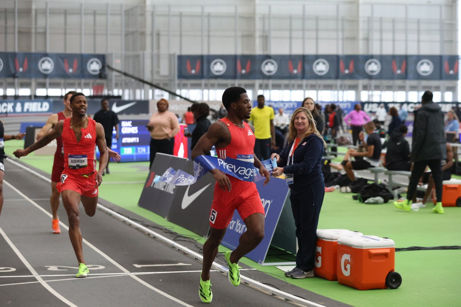 4×400 m: US looks clear; big fight for other medals; mention Jamaica, Belgium, and the Netherlands.  3:01.51 is the indoor WR.