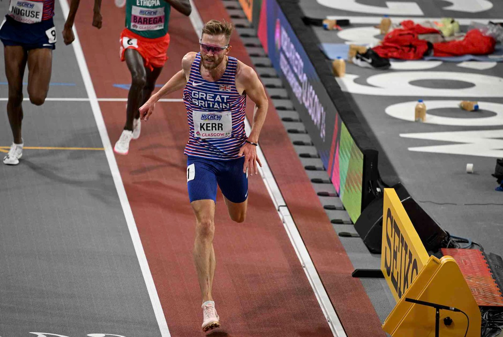 Josh Kerr for the win, Glasgow 2024 3000 meters, photo by Getty Images for World Athletics