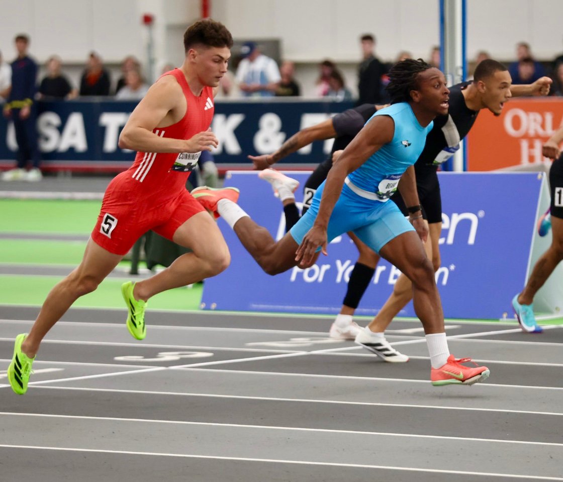 A brilliant 60m hurdles by Dylan Beard and Trey Cunningham, photo by Chuck Aragon