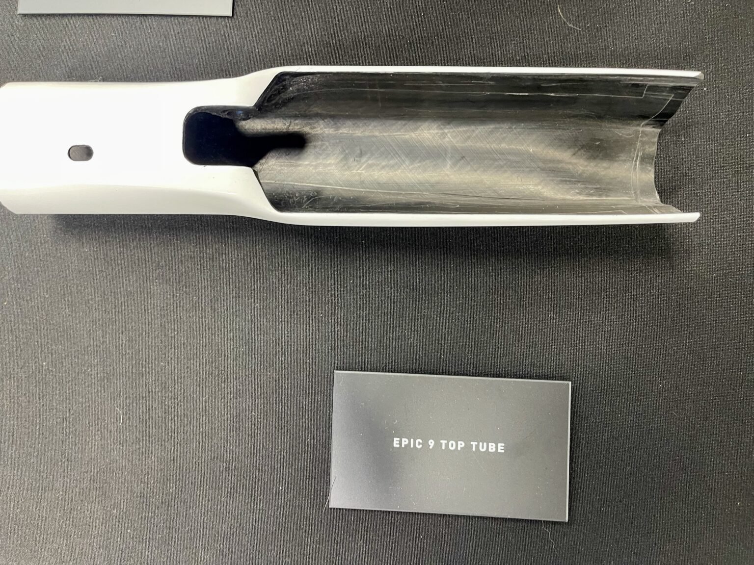 (Epic 9 design engineer Jason McDonald reached his 20th year with Specialized while working on the Epic 9. So, of course, they had to make him a custom frame, with colors and decals to match his milestone. Photo/Jordan Villella)