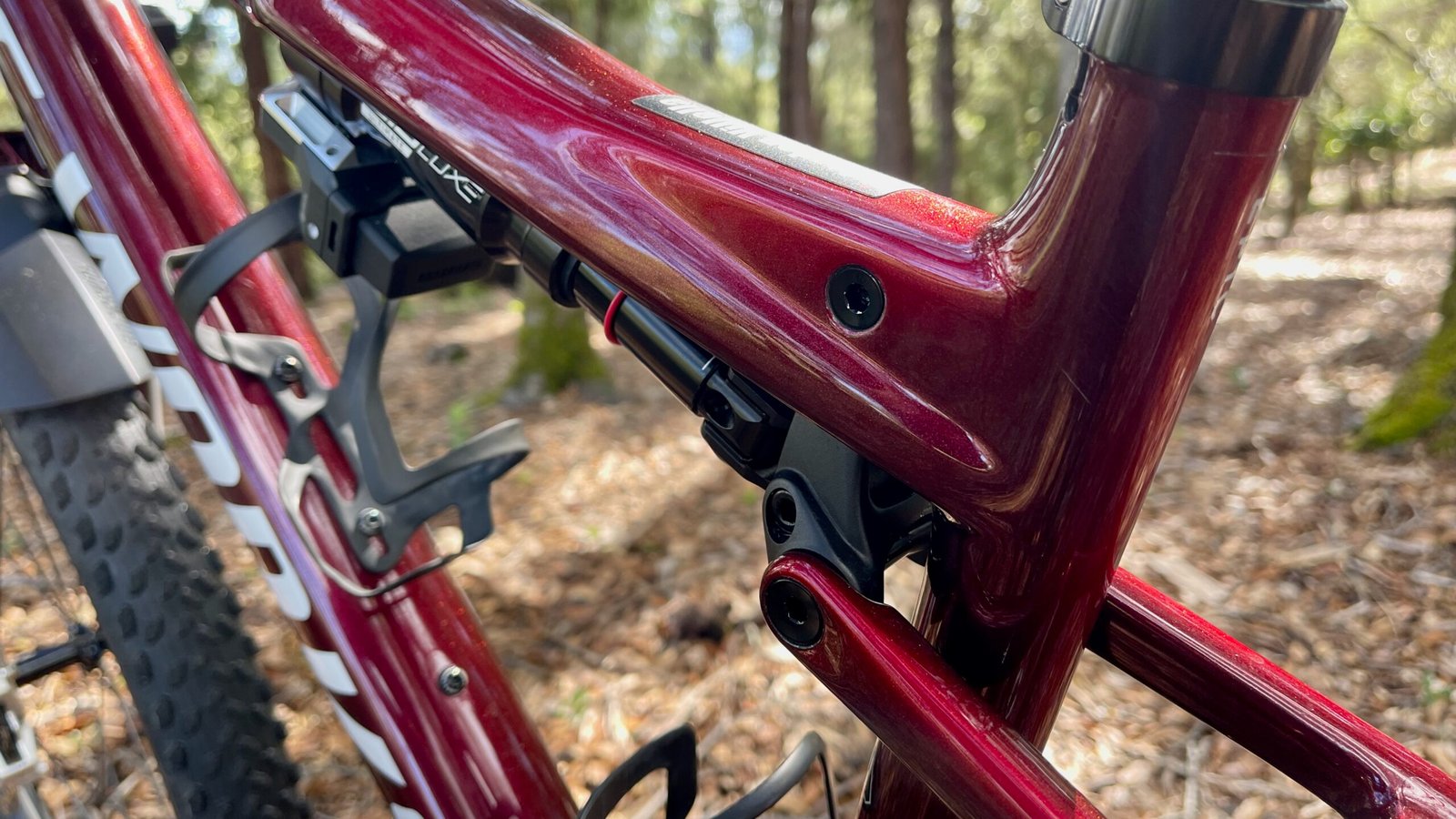 The frame gets massive construction-optimization overhauls. The design team trimmed 25% off the weight of the suspension linkage and 13% off the hardware. They also remimagined the bottom bracket construction and the junction near the top of the seatpost.