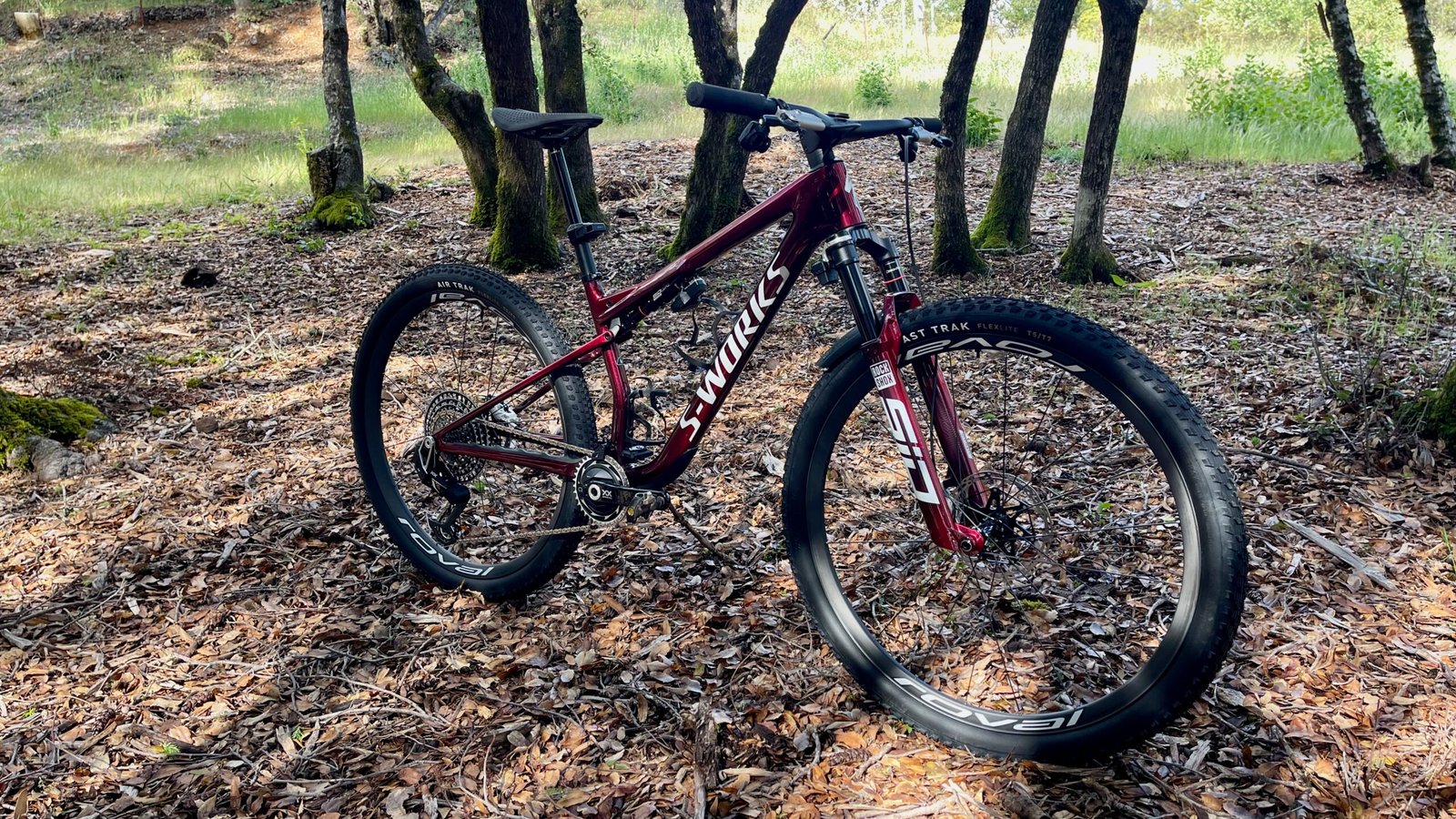 This is the halo build for riders who want the lightest, most stripped-down version of the new platform. It uses the S-Works FACT 12m carbon frame, a RockShox SID SL Ultimate 110mm fork, and a RockShox SID Luxe Ultimate rear shock. The fork is a limited edition with lowers crafted from magnesium (you read that right), and the finish is a clear coat, so you can see all the sweet mag action. The caveat is it only 110mm travel, but it makes up for it in style points.
