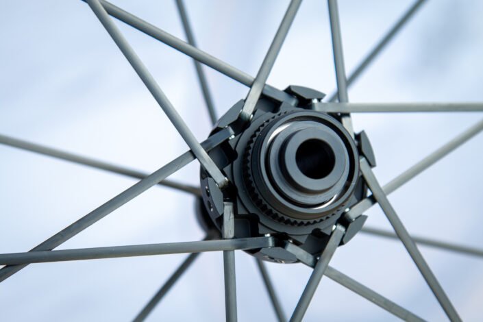 Of course, these proprietary spokes will need a proprietary hub, but a similar obsession with the details has been employed here as well. An external lockring for Centerlock is used to allow wider bearing spacing, and the main load bearing is a needle bearing for increased durability. The freehub ratchet is a helical spline design with very low drag, but the design means the harder you pedal, the harder the ratchet engages. Even the end caps have been given an overhaul with PEEK plastic, which they claim is 4x stronger than aluminum but is still kinder on carbon frames and won’t corrode.