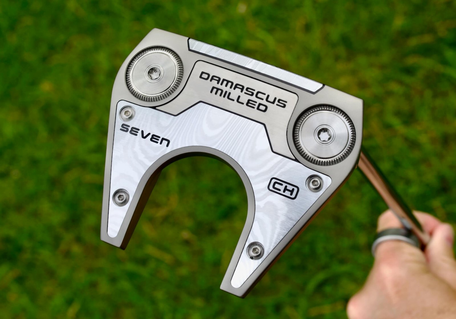 Ignoring the insert, this is a great version of the Seven. If all they did was deep mill the stainless steel face, I’d be a fan. At address, the dots and lines mesh perfectly with the putter geometries. I’d game a non-Damascus version without protest.