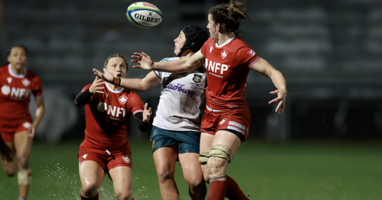 The wet conditions helped the Wallaroos put the brakes on Canada’s formidable attack, keeping their rivals from crossing until the 19th minute.