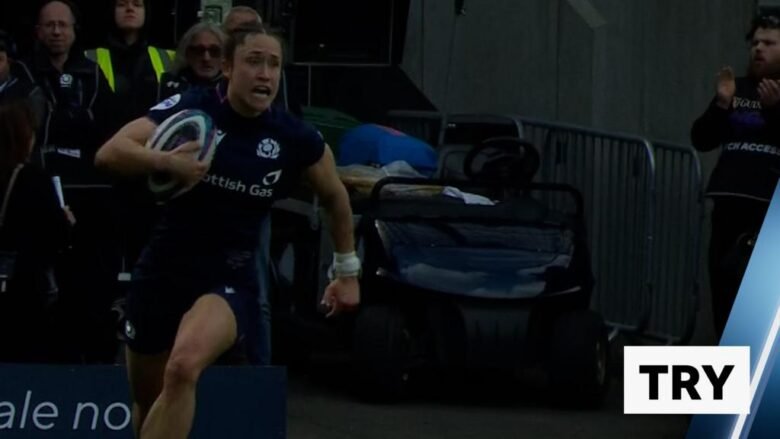 Watch Rhona Lloyd score a superb try for Scotland against England in the Six Nations.